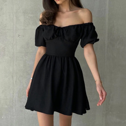 Enyami French Classic Elegant Women Sexy Black Night Dresses Vestidos Party Prom Halter Sleeveless A-line Short Evening Dress
